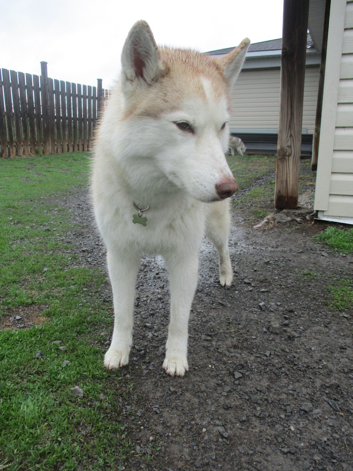 Maple couldn’t wait to be outside and running around; I think she’s happy to be back! Maple raced around the yard a couple times and when she noticed the other dogs gathered near the rocks she went to see what was going on. She found them thoroughly sniffing an interesting section of rocks. She left them to it and went running off once more. Maple continued to race around on her own until she met up with Maverick and Shyla. It started with Maverick. He saw her race past and went tearing after her, but not too long after Shyla joined them. The three of them had a blast racing around the yard with a little wrestling thrown in. Later they needed a breather so Maple tagged along while Shyla explored. She didn’t stick around long and was soon racing around once more.