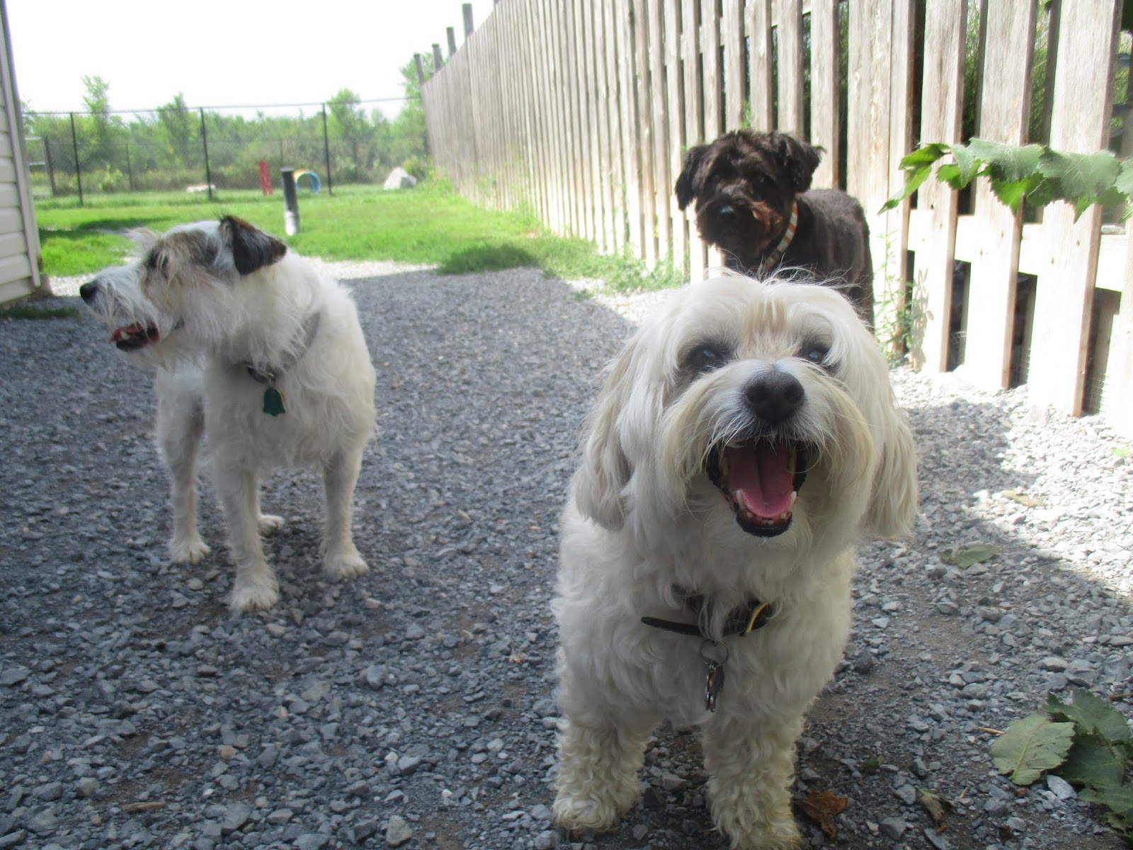 Max and Sadie were so excited to be here for daycare. As soon as I went to get them for their walk Max’s ears perked right up as he knew it was walk time. Sadie couldn’t wait to get out on the trail this morning, however before we went out for their walk she asked for a few kisses. On our walk Max took some extra time to sniff around in the tall grass while Sadie seemingly trotting through the field. After sniffing around Max decided he would walk along side his sister for the rest of the walk. When we got back in the building, Max made sure to hydrate well before settling down on his cot. When it was time to go out for their group Max and Sadie ran out the door like there was no tomorrow; they were very happy to be seeing their friends. After doing a few laps around the yard Max and Sadie joined their group in a game of chase me. As they all ran around the yard, something caught Max’s eye… a hole! As Max ran over to investigate the hole Sadie wondered what he was up to, so Sadie ran over to see what was in this intriguing hole. After discovering that there was nothing in the hole Max and Sadie decided to sniff around for the rest of their group.