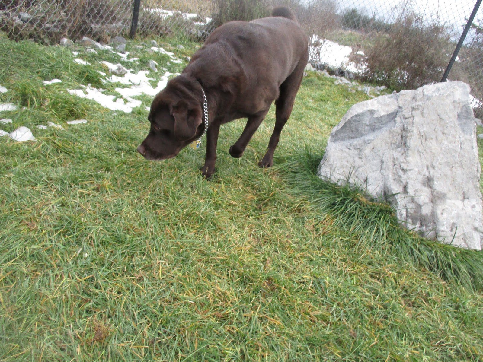 Maya broke off from the action to sniff and explore the yard. She was happy to
