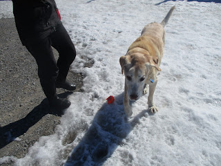 four-legged guests from having fun out in the yard! Although Rocky was game for a full walk this morning, he thought it should be much warmer by the time his group time rolled around. He settled for a sunny spot in the snow by the door but no