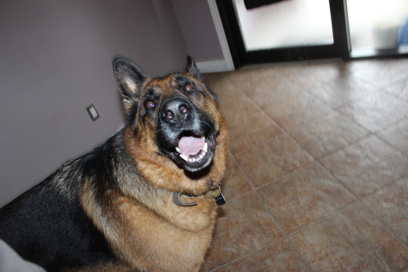 Duke was very interested in his new group mate, Nyxx. He spent the majority of his outdoor time following him around, trying to get him to play. Nyxx was very focused on Kyah, and wasn't giving much attention to Duke until finally Duke made a move and leapt right on Nyxx. Nyxx turned around quickly and gave in to his game request. The two boxed back and forth, which then led to some wrestling. Duke loved all the fun and games he was having with Nyxx, but didn't realize he is twice the size of Nyxx. Continuously knocking him over, all in good fun, I had to take Duke away for a bit to give Nyxx a break. Duke was so wonderful showing me his sit and down in the yard with many distractions around. After a bit of a break he went back to Nyxx for some running around fun. He was ready for a nap after play time, but was eager to get out for his next outing when the time rolled around. Later in the afternoon, I got to spend some extra attention time with the handsome Duke. He was alert as usual, but also ready to lay at my feet and just enjoy the pets and attention I gave him. I really enjoyed this special time with the sweet Duke!