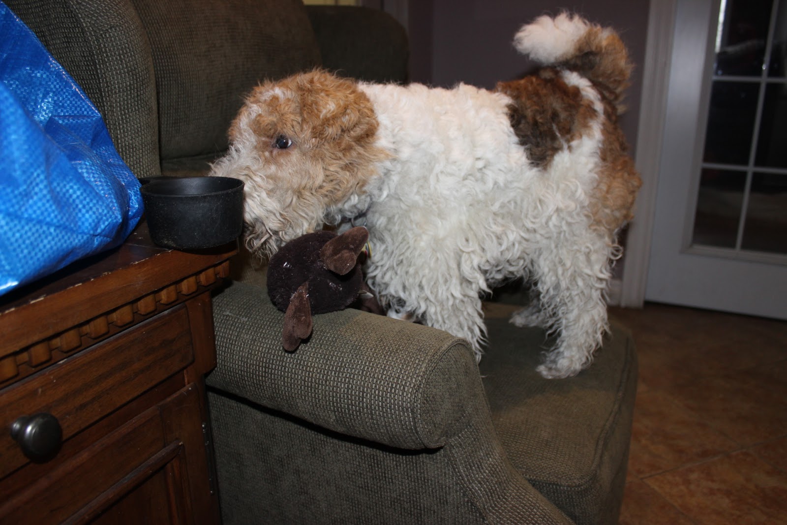 bin and started waving it around. He was so excited and started pawing it and