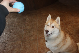 Boris and Tasha had a blast throughout the entire day today! They were both so eager to greet me this morning when I first let them out that Boris nearly knocked me over while giving me as many kisses as he could. The two of them were super excited for their walk this morning and just couldn't wait to explore the trail. Every day there seems to be new smells on the trail for Boris to follow. As soon as we got outside he had his nose stuck right to the ground in search of something. I think Tasha found it a bit silly because she would go over to join him but quickly decide to come back and see me. Every time Tasha came back, she made a point of rubbing her head against my hand before racing to the end of her leash. Sometimes, when Tasha would run to the end of her leash, it would be enough to distract Boris from his sniffing and he'd decide to chase after her. This led to a few sprints throughout our walk which definitely kept things interesting. When it came to one of their long outdoor play group, Tasha and Boris were both excited to see that they had the entire yard to themselves. As soon as they got outside, Boris started doing laps around the yard running at full tilt. He raced around the yard many times and every time he passed Tasha, Boris tried to nudge her to join him. Instead of running along side him, Tasha stayed stationary in the middle of the yard and would jump at Boris as he ran by. Even though Boris saw it coming, he seemed surprised every time it happened and would frantically try to dodge Tasha. After they were done playing their little game. Tasha and Boris got caught up in a full blown play tackle. The two of them took turns bouncing on top of one another until I brought a little stuff out for them to play with. Boris somehow saw the stuff in my hand and immediately raced towards me. He ended off his group time with the toy in his mouth and Tasha did her best to take it away from him. Once she did, another race ensued. Tasha was very focused today while we were training. We started off with some basics in the playroom, just us gals. At first she inspected all my pockets for treats, and when she found none, she was very attentive, wondering when she would get her treats. This made it easy for her to focus. I got her to sit down and lie down a few times and each time she dropped right to the floor to lie down. I praised her with lots of cuddles and a back scratch which she loved. After doing this for some time, we went outside to work on our leash work. Not much was outside to distract her so Tasha walked pleasantly beside me, only pulling on the short leash a few times. Boris and I went walking as well, and with his pinch collar on, he was a little angel on the leash, with some reminders here and there to walk beside me. In the playroom, Boris and I worked on some simple commands. He is very good at sitting and waiting patiently for me to release him from his sit. He had some trouble today staying focused, so we eventually worked on some recall. After a few tries, he got the idea of what he was suppose to do and became a natural, still needing some work on our distractions though!