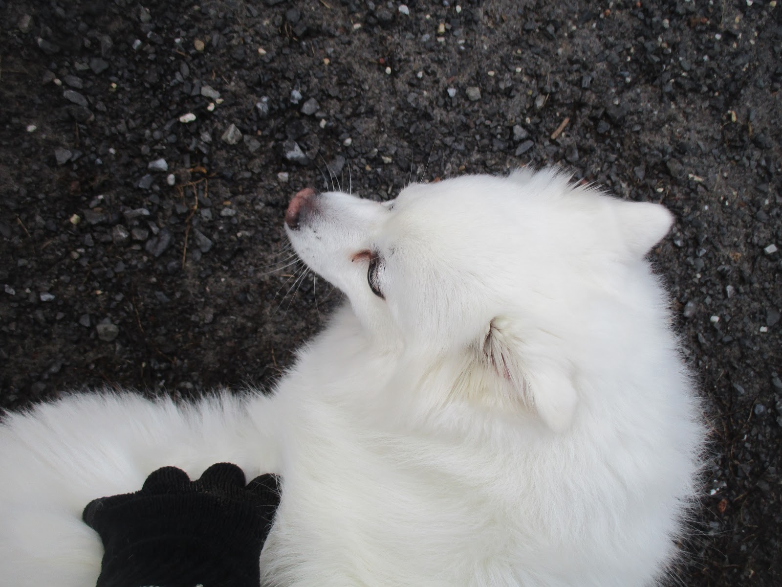 Nanook had a great time outside today. He started off by sniffing all around the yard; it has been awhile since he’s been here so he had to check out all of the new smells! Nanook made sure to take the time to meet each new friend outside individually. He took a particular liking to a dog-named Rudy. Rudy is a little bit smaller than Nanook and very outgoing. It took Rudy a couple of attempts to get Nanook to play with him but after that they had a blast! Nanook let Rudy chase him around the yards. However if Rudy jumped on Nanook, Nanook was sure to let him know he didn’t appreciate this. Rudy would respectfully stop and happily go back to their game of tag. Even though the ground outside was covered in mud Nanook did a pretty good job at keeping his all white coat clean.